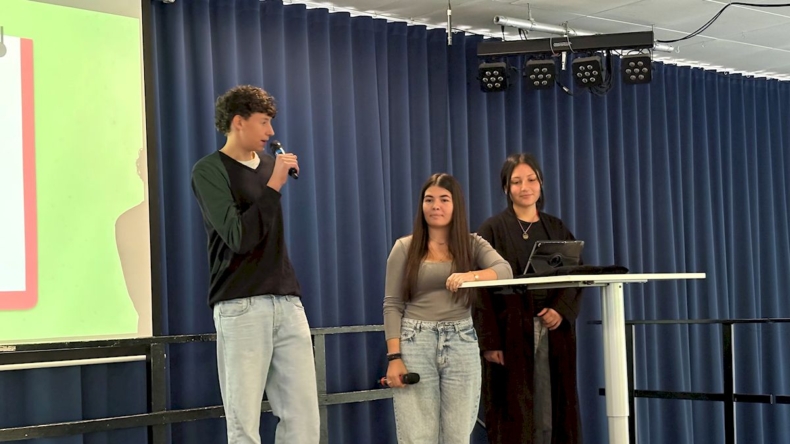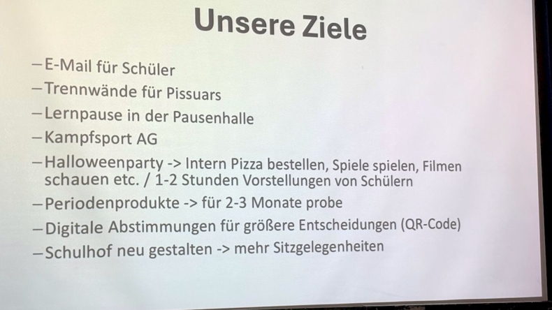 Sie präsentierten ihre Ziele und Vorhaben in unserer Pausenhalle zunächst den Schülerinnen und Schülern der Stufen 5-7 und dann der Stufen 8-10. Anschließend gab es die Möglichkeit für alle Schülerinnen und Schüler, die Teams mit Fragen zu löchern und ihnen auf den Zahn zu fühlen.