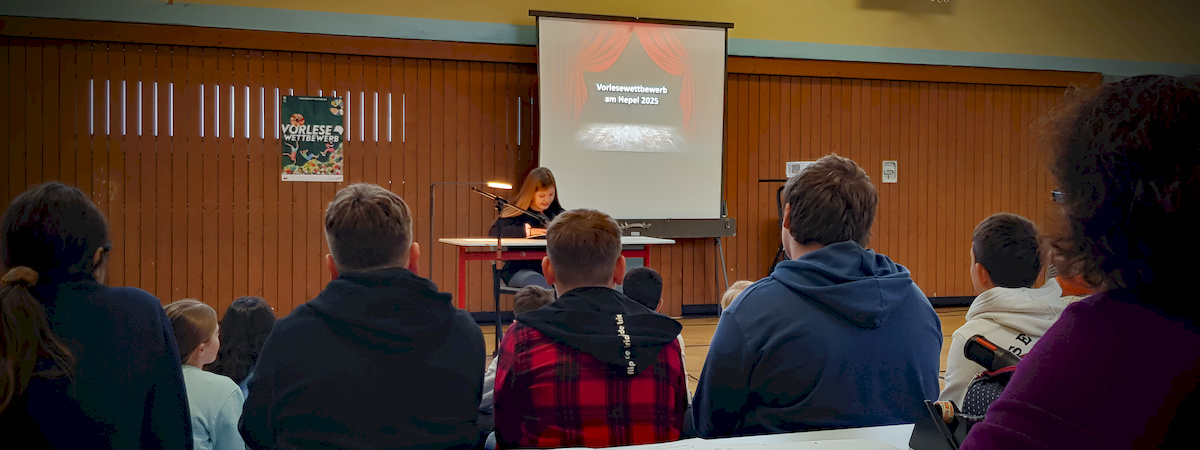 Am 11.12.2025 fand in der Sporthalle unserer Schule der diesjährige Vorlesewettbewerb der Jahrgangsstufe 6 statt. Alle sechsten Klassen waren dabei und sorgten für eine gespannte und wertschätzende Zuhöreratmosphäre.