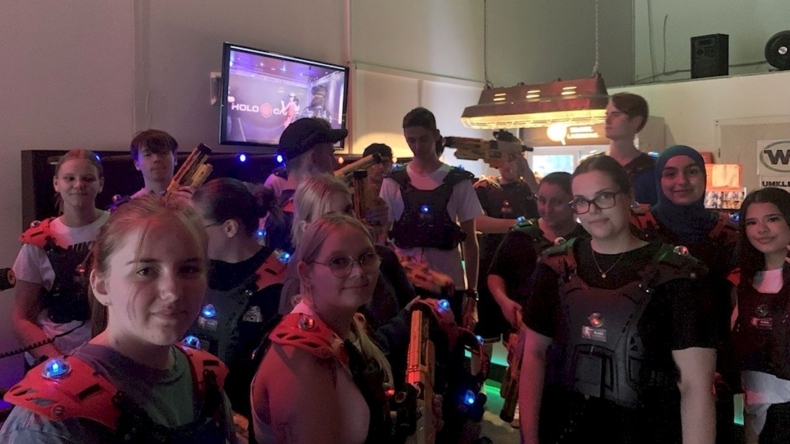 Am Abend stand dann ein weiteres Highlight auf dem Programm: Lasertag spielen! In einer modernen Arena konnten die Schülerinnen und Schüler ihr Geschick und ihre Teamarbeit unter Beweis stellen. Der Adrenalinrausch und der Spaß waren bei allen Beteiligten spürbar, und es wurde viel gelacht.